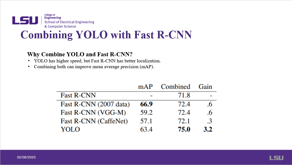 Combining YOLO and Fast R-CNN achieves a higher mAP, due partially to the reduction of false positives.