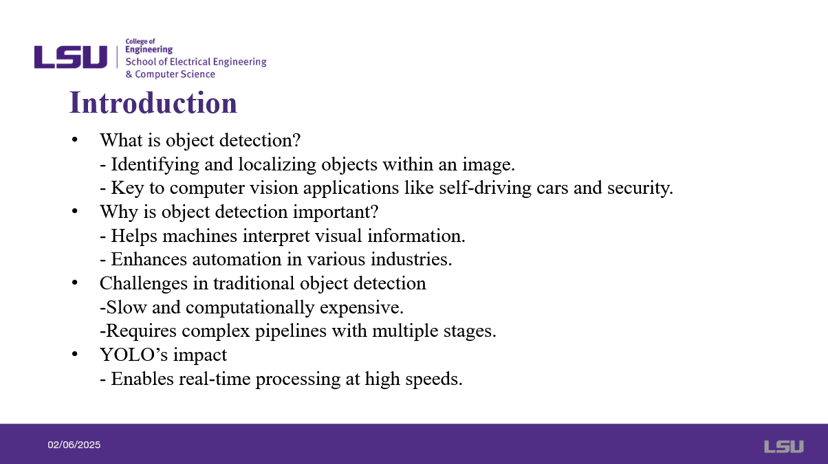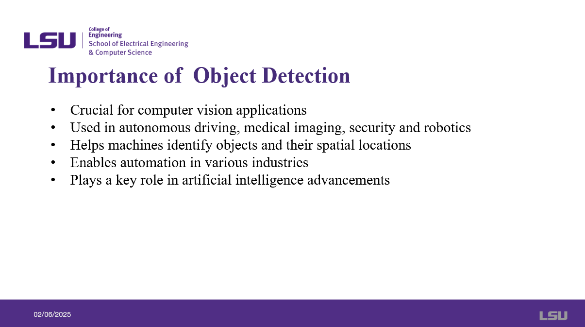 Object detection is an extremely important issue. It is used in computer vision applications, autonomous driving, medical imaging, security, robotics, helps machines identify objects and spacial locations, enables automation in various industries, and plays a key role in AI practical applications.