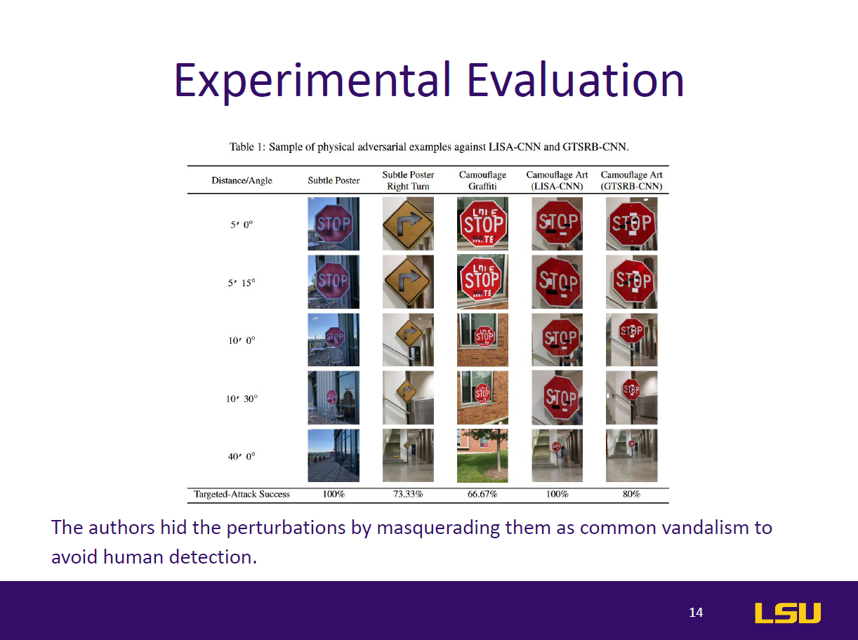 Professor: The professor highlighted the broader significance of the paper for future fully autonomous vehicles. He discussed how targeted attacks, such as those triggered to affect specific users, present serious risks. He praised the experimental design of the paper and stressed the importance of learning how to extract actionable insights from performance metrics and testing methodologies.