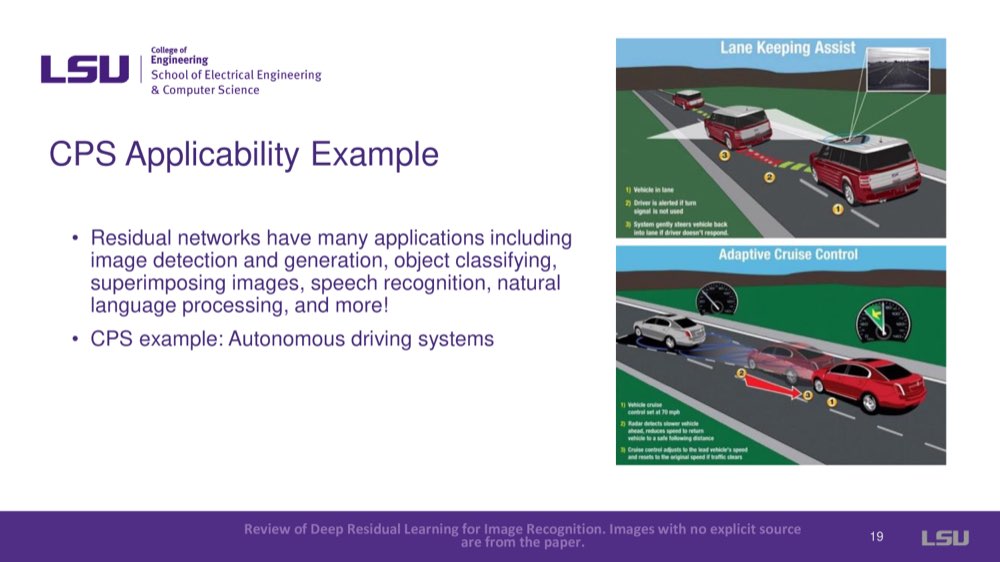 ResNets has broad applications, including autonomous driving systems where accuracy is crucial for tasks like object detection and classification. For example, image detection of stop signs or a car is crucial.